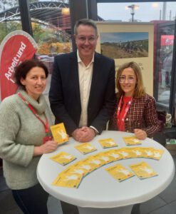 Am 08.11.2025 fand in Mainz die 6. Ordentlichen Bezirkskonferenz des DGB Rheinland-Pfalz/Saarland statt. An der Veranstaltung nahmen zwei Beraterinnen vom Projekt Faire Mobilität RP 2025 teil. Der Europäische Verein für Wanderarbeiterfragen e.V. wurde als Aussteller eingeladen, zusammen mit anderen gewerkschaftsnahe Organisationen. Die Konferenz stand unter dem Motto „Gemeinsam mit uns“ und brachte Delegierte mehrerer Gewerkschaften und Vertreter der Politik aus Rheinland-Pfalz und aus dem Saarland zusammen. In den Vorträgen legte die DGB den Akzent auf eine starke Wirtschaft und gute Arbeitsbedingungen, sowie auf die Notwendigkeit eines starken Sozialstaats.