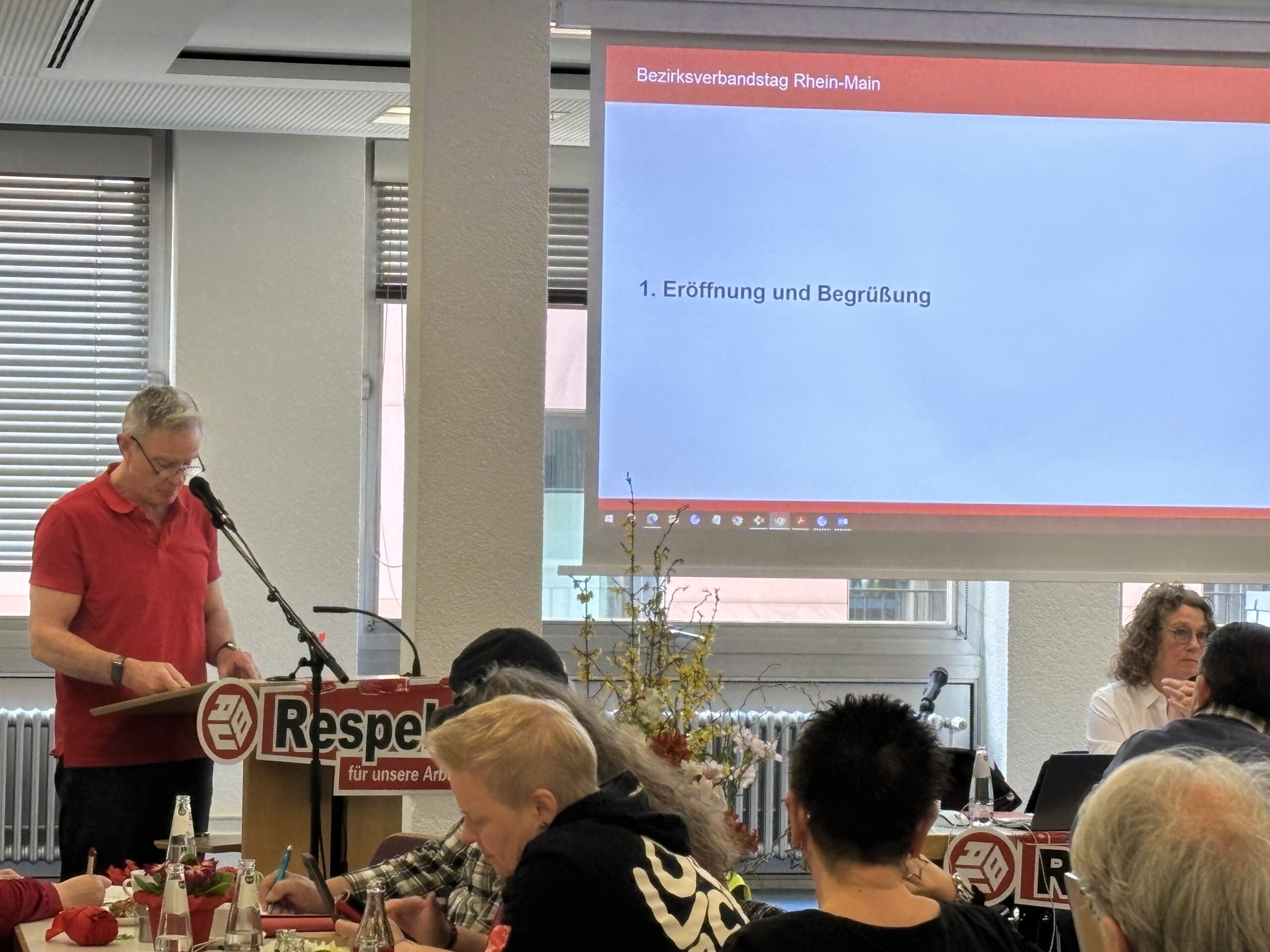 Am IG BAU Bezirksverbandstag Anfang März nahmen etwa 50 Personen teil, darunter Mitglieder der IG BAU sowie die Abgeordnete der Partei Die Linke, Frau Janine Wissler.